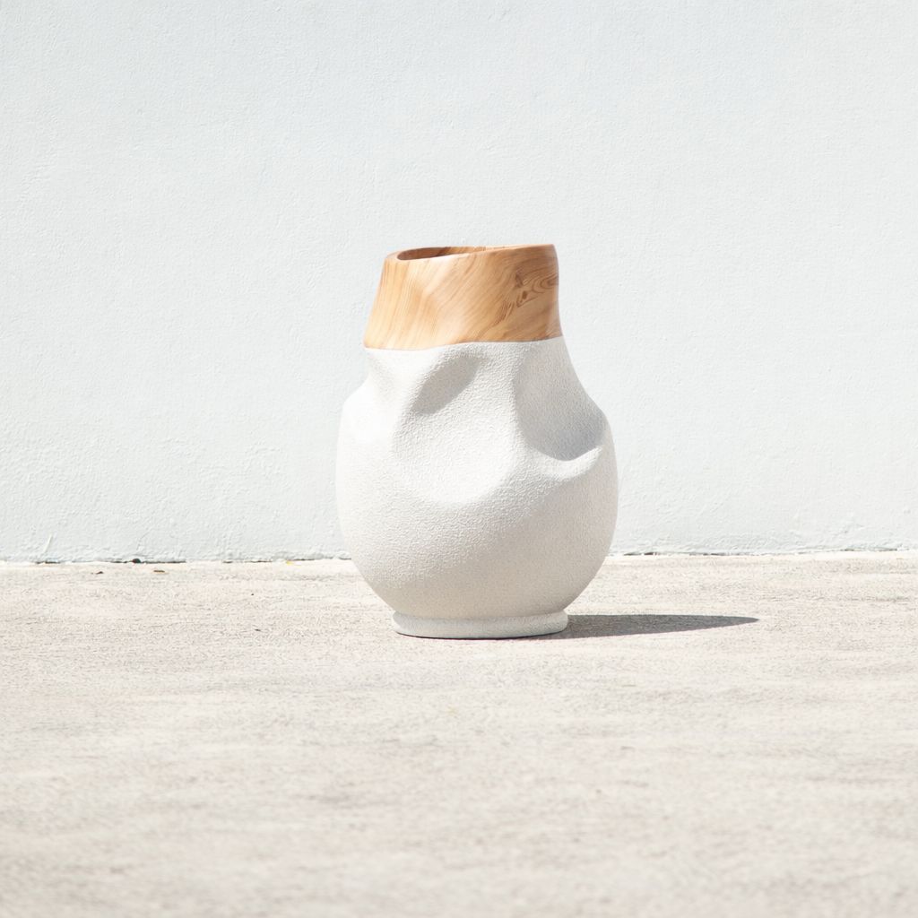 White Aura is a large, sculptural decorative pot designed to make a statement in any space. With her generous size and soft, organic curves, she brings instant presence and calm, modern elegance to your interior. The serene white, stone-like finish creates a beautiful, neutral base, while the natural wood like rim adds warmth and contrast, making her a striking blend of contemporary and earthy design.